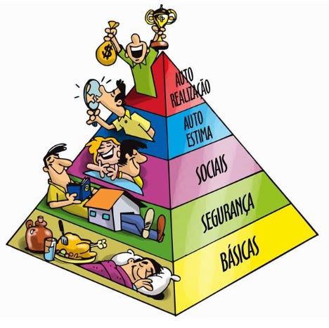 Segundo a Pirâmide de Maslow, nossas necessidades humanas vão das mais básicas às mais elevadas: fisiologia, segurança, pertencimento, estima e autorrealização. Uma moeda forte é a base material que garante a segurança financeira, essencial para subir os demais degraus. Sem ela, toda a estrutura desmorona. A moeda FIAT corrompe essa base ao tornar o dinheiro um instrumento de roubo e instabilidade. O Bitcoin, por sua vez, resgata a previsibilidade, a propriedade e a liberdade individual, devolvendo ao indivíduo a capacidade de buscar realização plena.